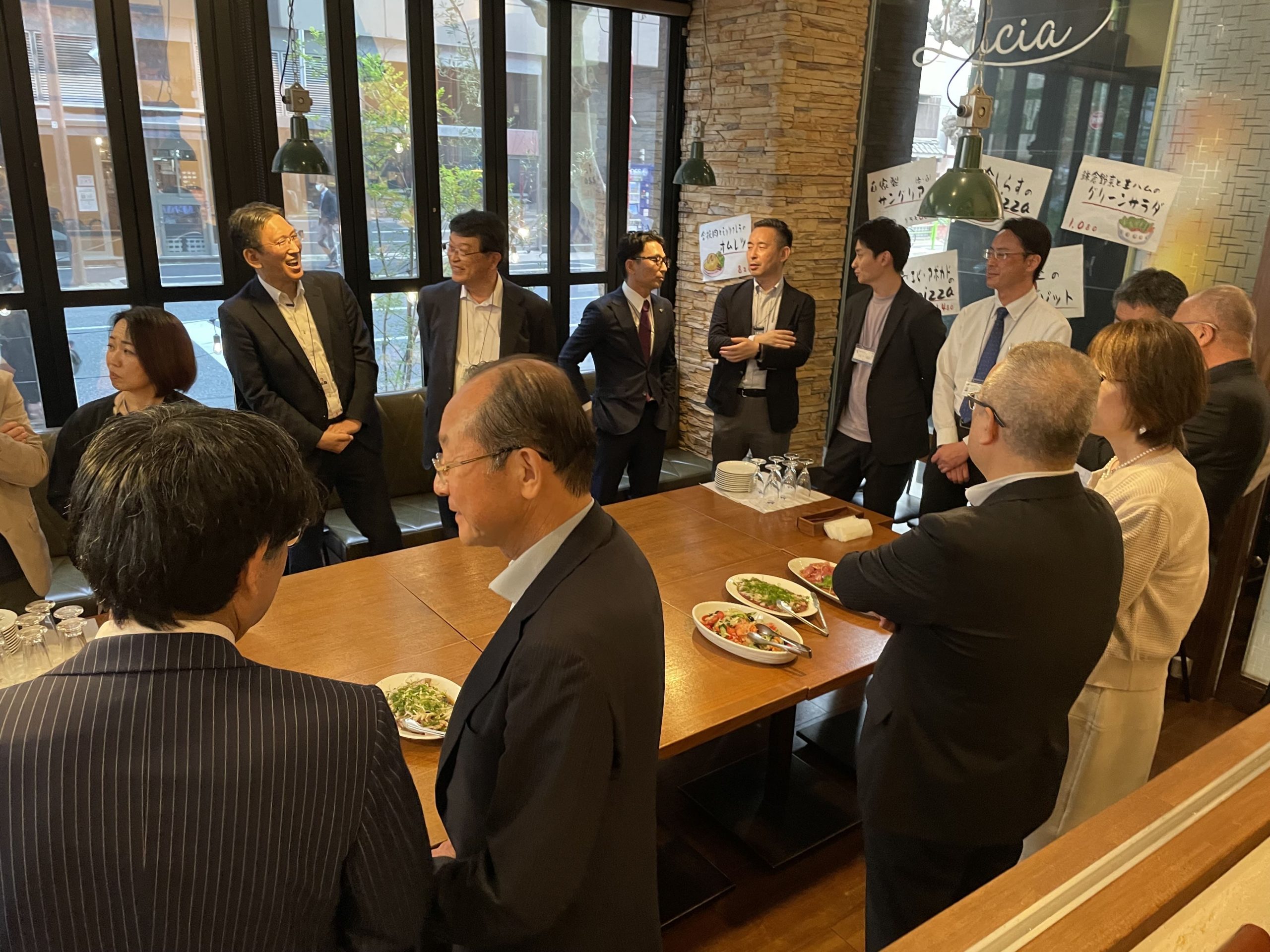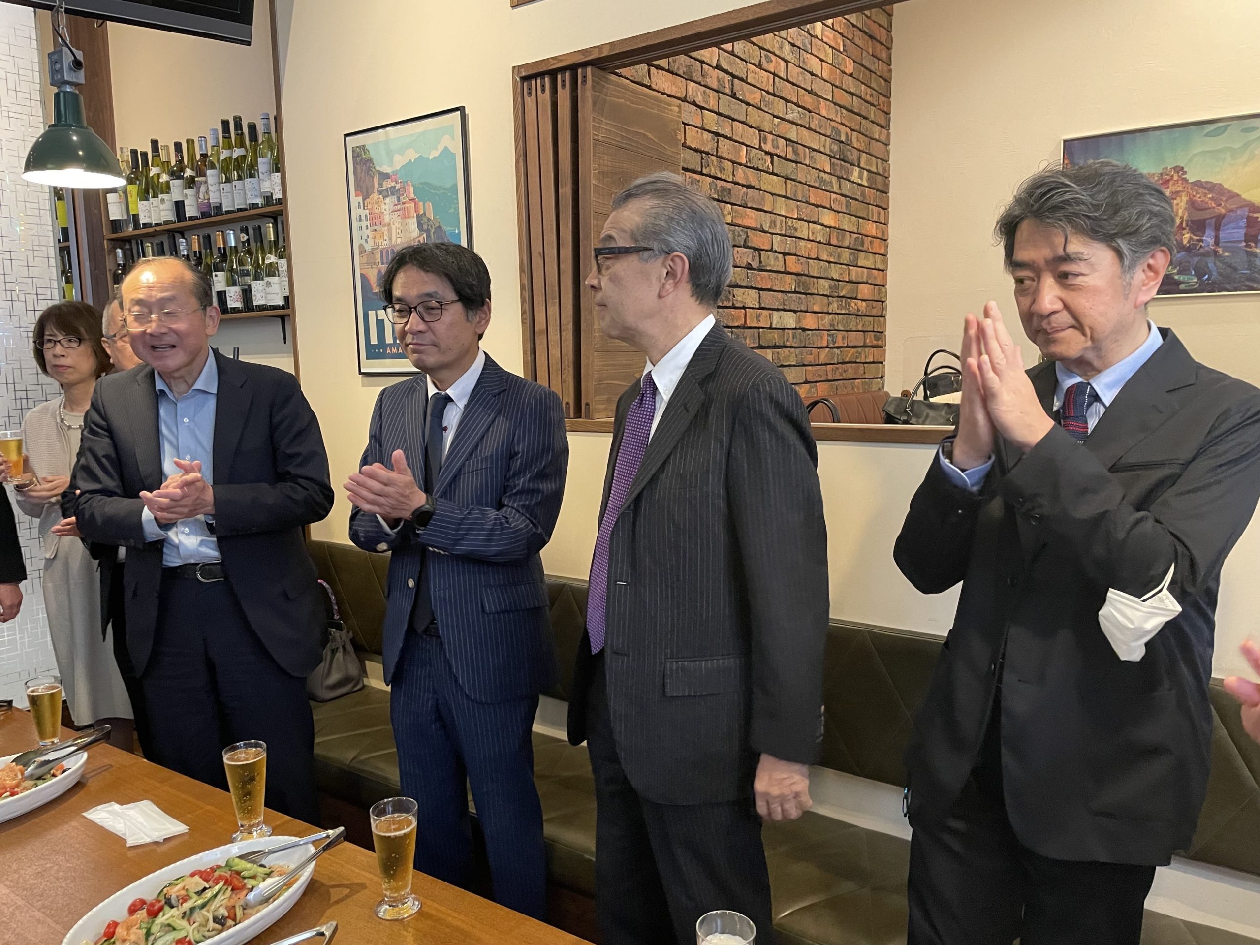 懇親会から、クロス・ヘッドの関部長、あいおいニッセイ同和損保の須貝推進役、SBIから沢田マネージャーにご参加いただきました。